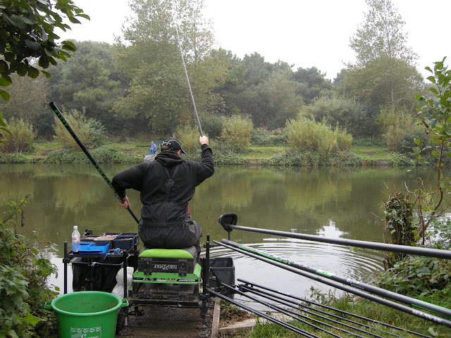 At the whistle I started on the feeder and caught a few small skimmers, my plan is always to catch on the pole as soon as possible, every time I picked up the pole I could only catch a couple of skimmers before they dissapeared, then it was back out on the feeder, this seemed the pattern for the day, at the end of the day I wondered if I should have stayed on the tip for the full 5 hours, Dean Barlow was on the end peg 40 and had caught steady all day and looked to have won the section. When we weighed in Dean had 10lb and I had 12lb 8oz, a nice way to start the week, so now it was back to the lodge and catch up on some sleep.