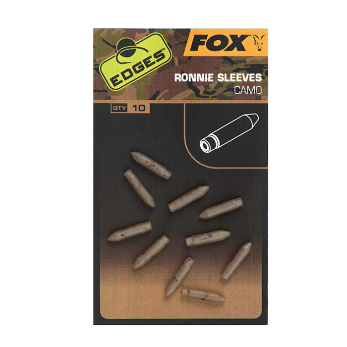 Fox Edges Ronnie Sleeves provide an easy way of securing the swivel to the eye of the hook on the Ronnie/Spinner rig presentations. The sleeve can be used to lock the swivel in place for a traditional style Ronnie rig or can be trimmed to leave the eye of the Kwik Change Hook Swivel exposed to increase movement.