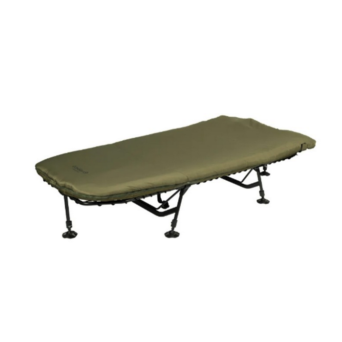 Featuring a comfortable mattress and a super-quick setup, simply unfold and relax for instant comfort. The six fully adjustable legs with mudfeet provide a stable and level setup, even on uneven terrain. With a wide sleeping area measuring 204cm x 90cm, this system offers ample space, making it ideal for anglers who prefer a roomier Bedchair.