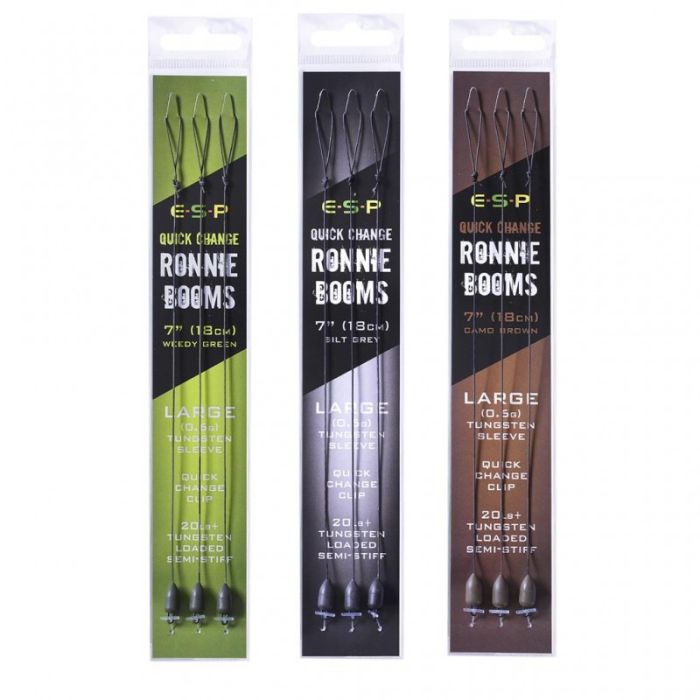 Perfectly tied with an optimum length of 7” (18cm), these are designed to complement Ronnie and Hinge rigs, allowing quick and easy change of the hook section while also incorporating the all-important tungsten sleeve which counterbalances the pop-up and also secures the rig onto the clip.
