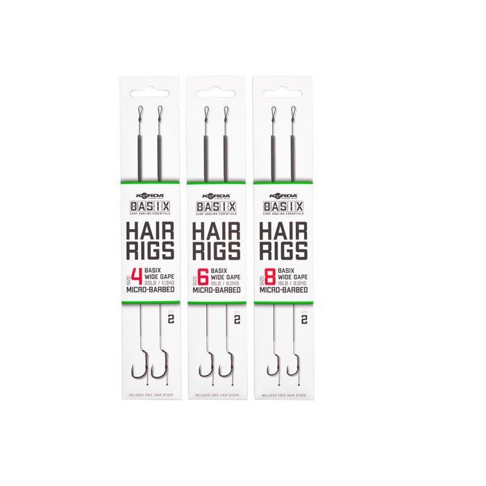 The Basix Hair Rigs come supplied in packs of two and are available in hook sizes 4, 6 and 8 in both barbed and barbles.