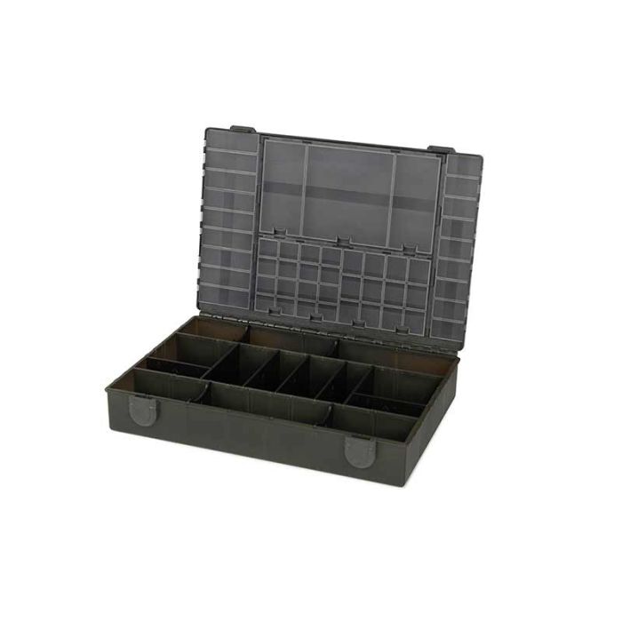 The unloaded version of the Fox Edges Large Tackle Box, With plenty of room inside to store a wide variety of end tackle tools and components. Manufactured from a tough smoked tinted plastic, and with the addition of a VCI Volatile Corrosion Inhibitor that actively prevents rusting of metal. With all the compartments designed to take the Edges internal boxes and accessories.